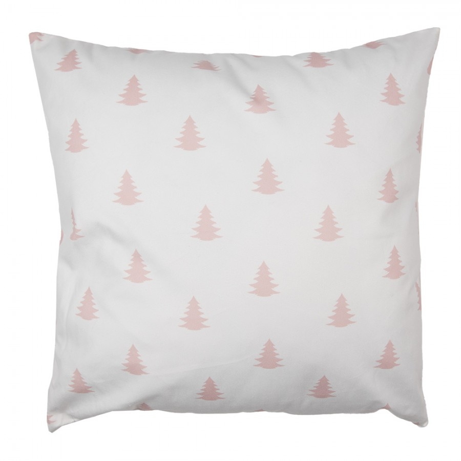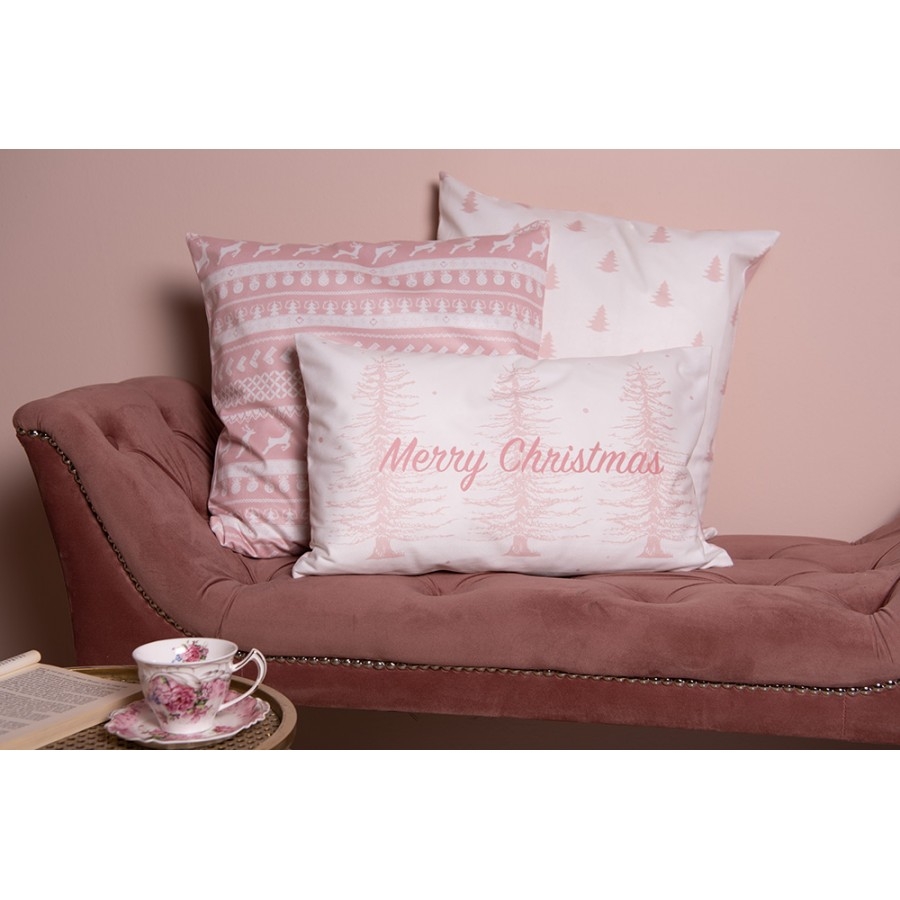 Polyesterová obliečka na vankúš v ružovom farebnom prevedení s dekorom vianočných stromčekov 45 x 45 cm Clayre & Eef 41995 - obrázok 1