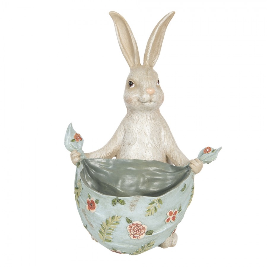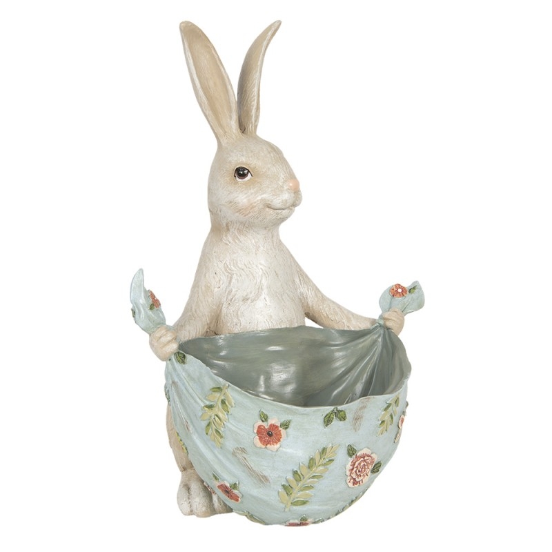 Polyresinová dekorácia postavičky krémového zajačika držiaceho v rukách šatku ako kvetináčom 25 x 25 x 36 cm Clayre & Eef 43233