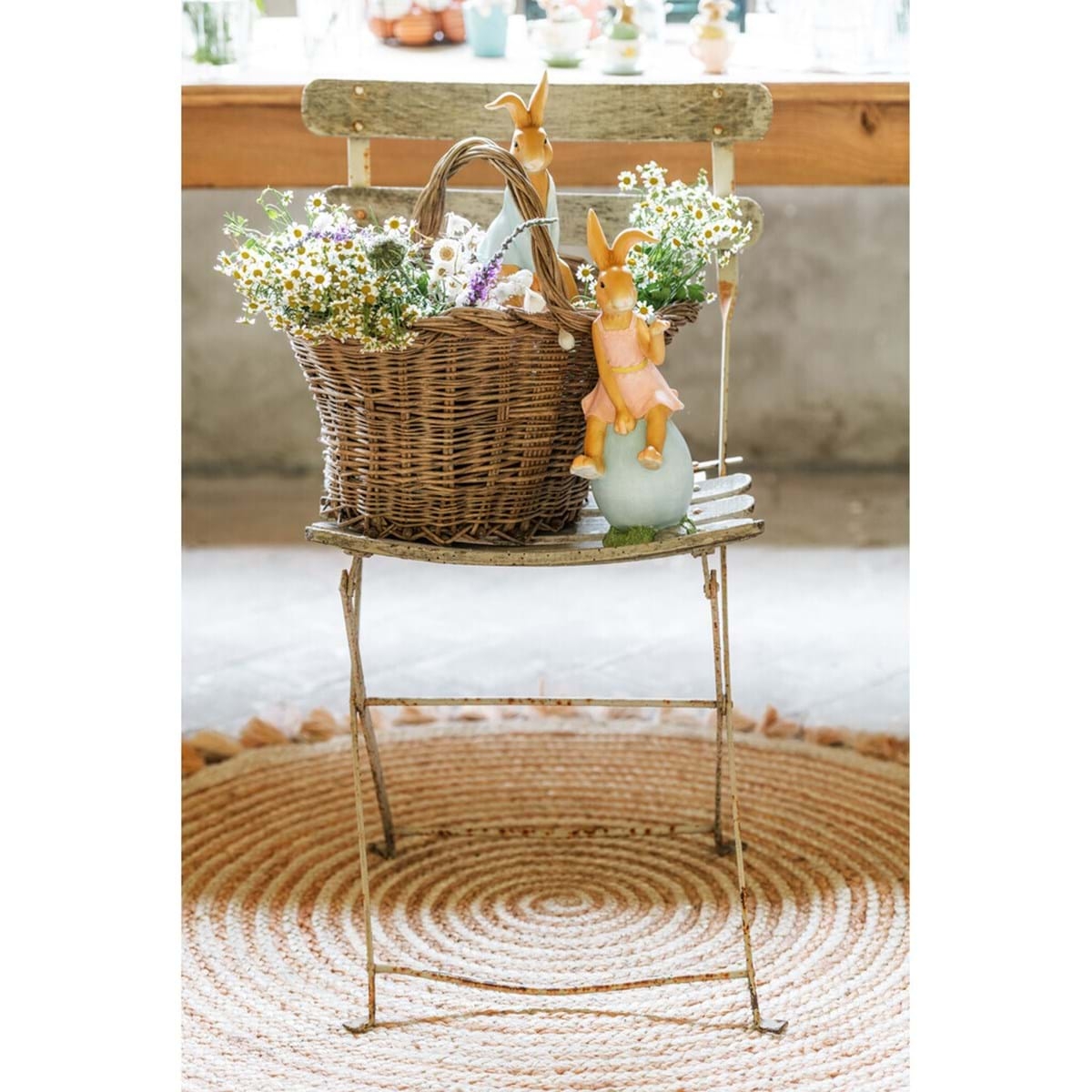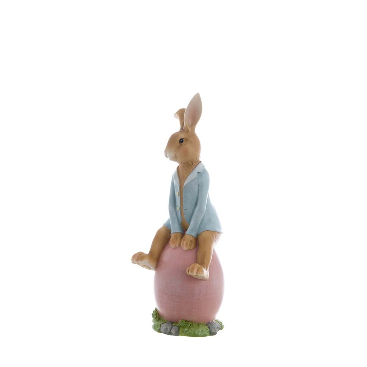 Polyresinová dekorácia postavičky zajačika alebo zajačice sediacich na vajíčku od exkluzívnej talianskej značky Blanc Maricló. Postavička zajaca je vyrobená v schaby chic a romantickom štýle, ktorý si zamiluje nejeden milovník vintage prvkov. Postavička je krásnou dekoráciou do Vašej domácnosti počas veľkonočného obdobia, ale aj počas roka. Postavička je prepracovaná do detailov. Je skvelým darčekom pre každého milovníka bytových doplnkov.