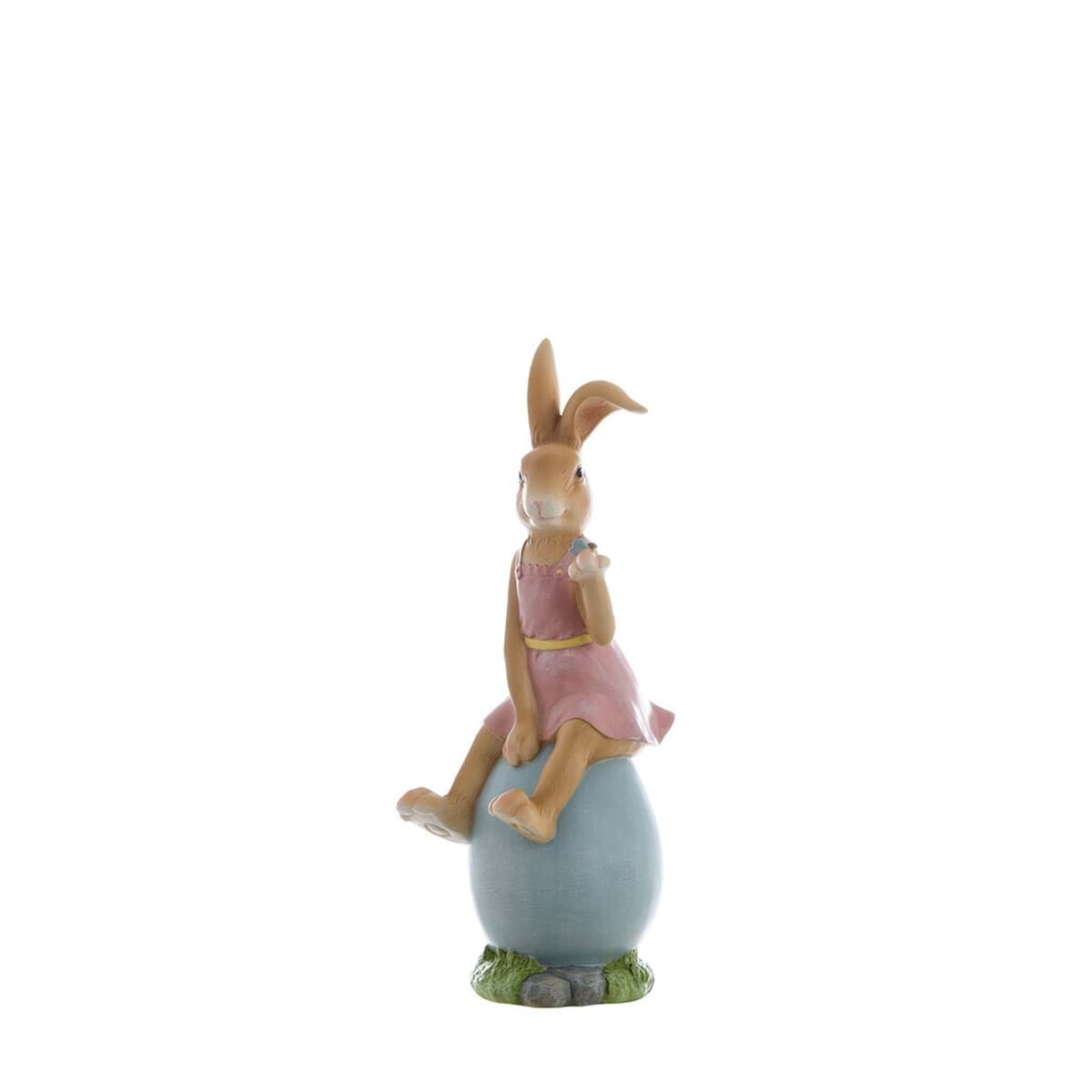 Polyresinová dekorácia postavičky zajačika alebo zajačice sediacich na vajíčku 11 x 13 x 32 cm Blanc Maricló 42557 - obrázok 1