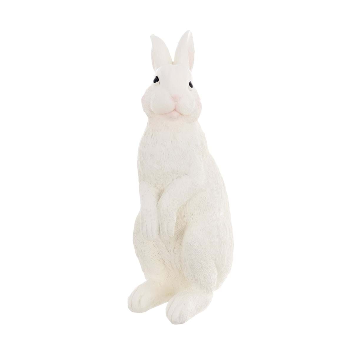 Polyresinová dekorácia sediaceho bieleho zajačika s huňatým kožúškom a ružovými líčkami 15 x 12 x 25 cm Blanc Maricló 39967 - obrázok 1
