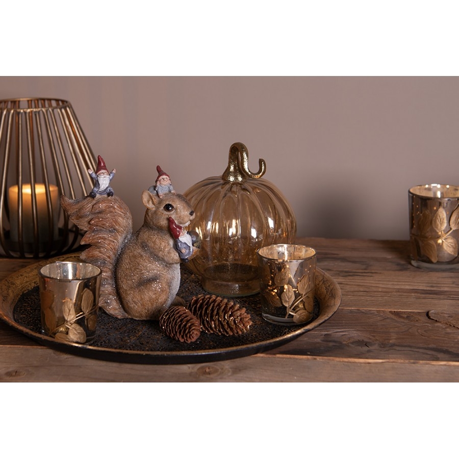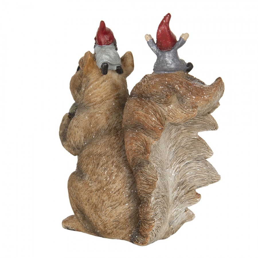 Polyresinová dekorácia sediacej veveričky v hnedom farebnom prevedení s trpaslíkmi a trblietkami 16 x 8 x 18 cm Clayre & Eef 43882