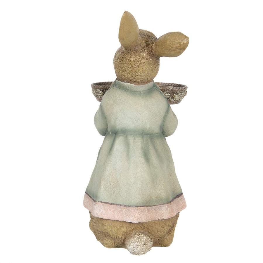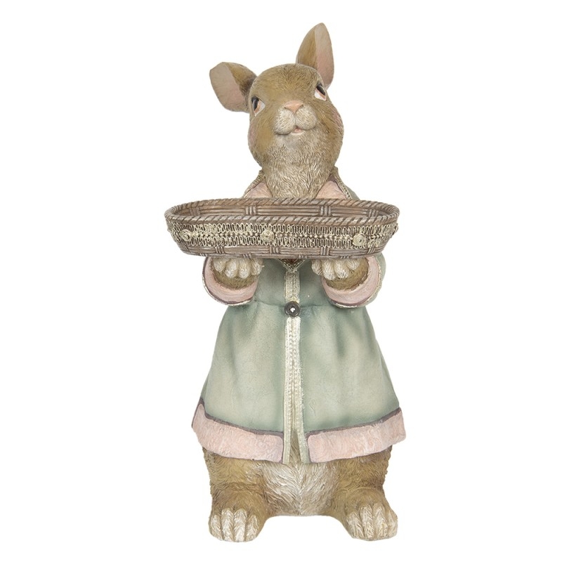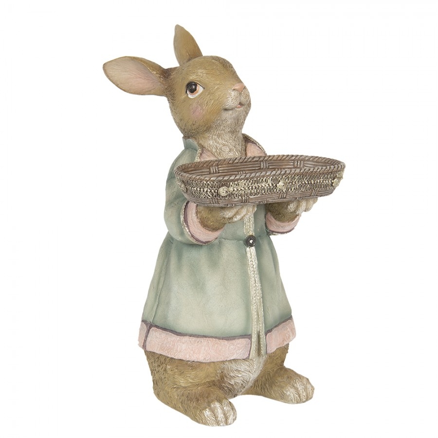 Polyresinová dekorácia zajačika v hnedom farebnom prevedení v kabátiku a s táckou v rukách 23 x 17 x 36 cm Clayre & Eef 43234 - obrázok 1