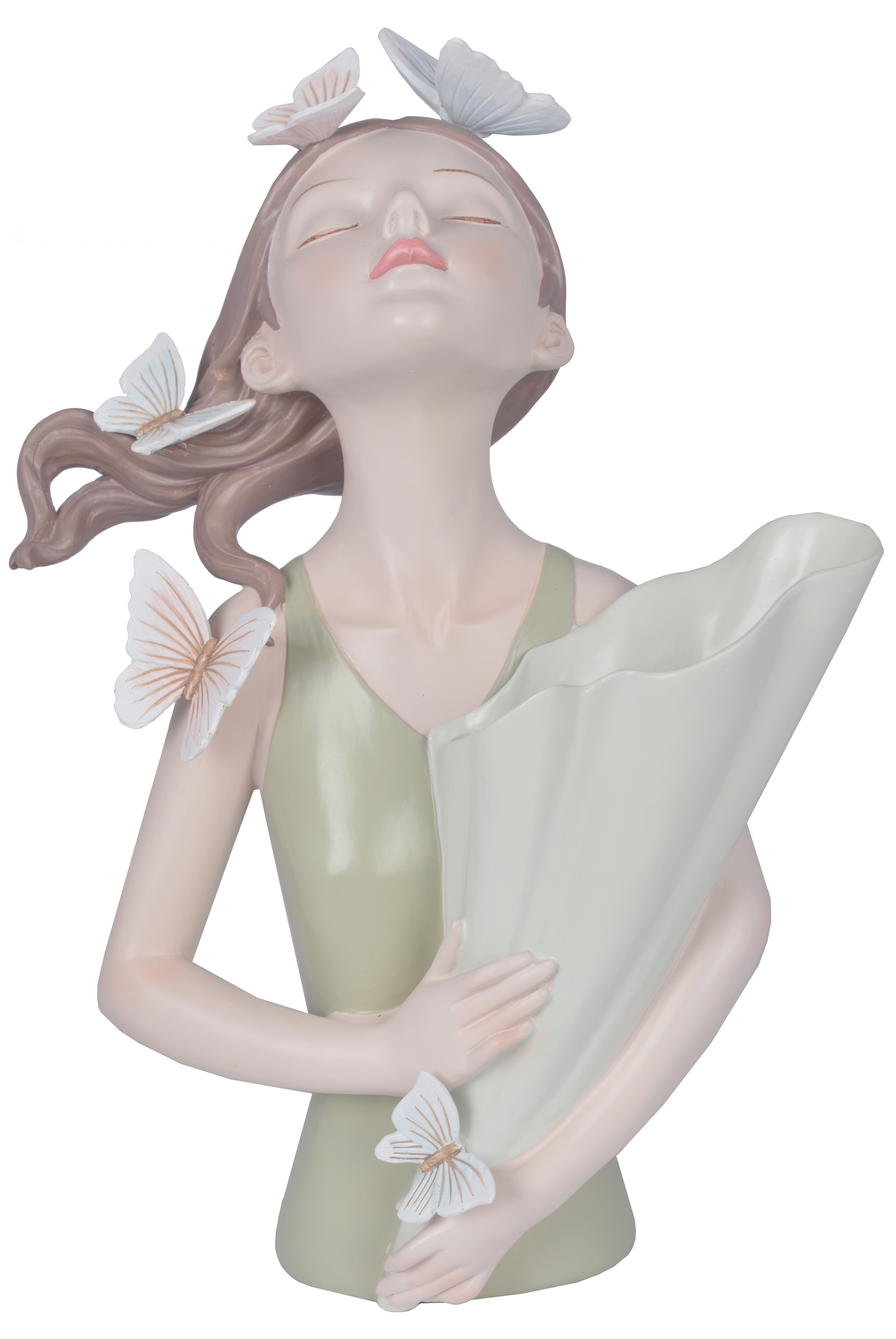 Polyresinová postavička ako váza s motívom dievčaťa s motýľmi je krásny a elegantný doplnok do Vášho domova. Rozžiari každé zákutie svojím elegantným a moderným vzhľadom. Rozmer vázy je 21,5 x 14,5 x 31 cm.