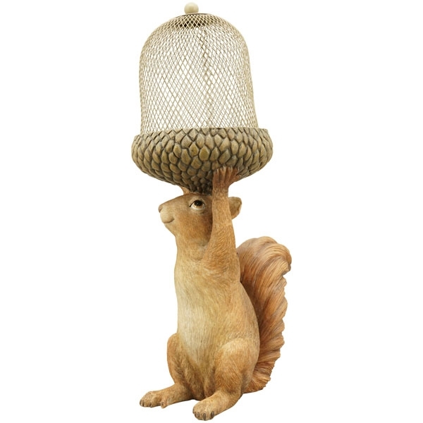 Polyresinová postavička veveričky držiacej žaluď - krmítko pre vtáčiky 22,8 x 14,7 x 42,5 cm 41054