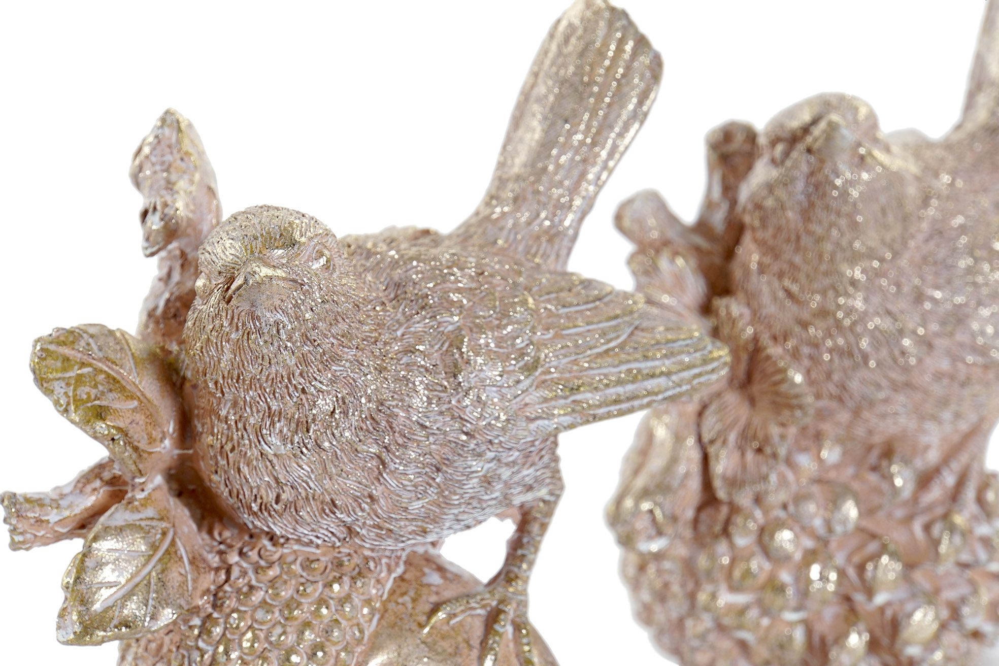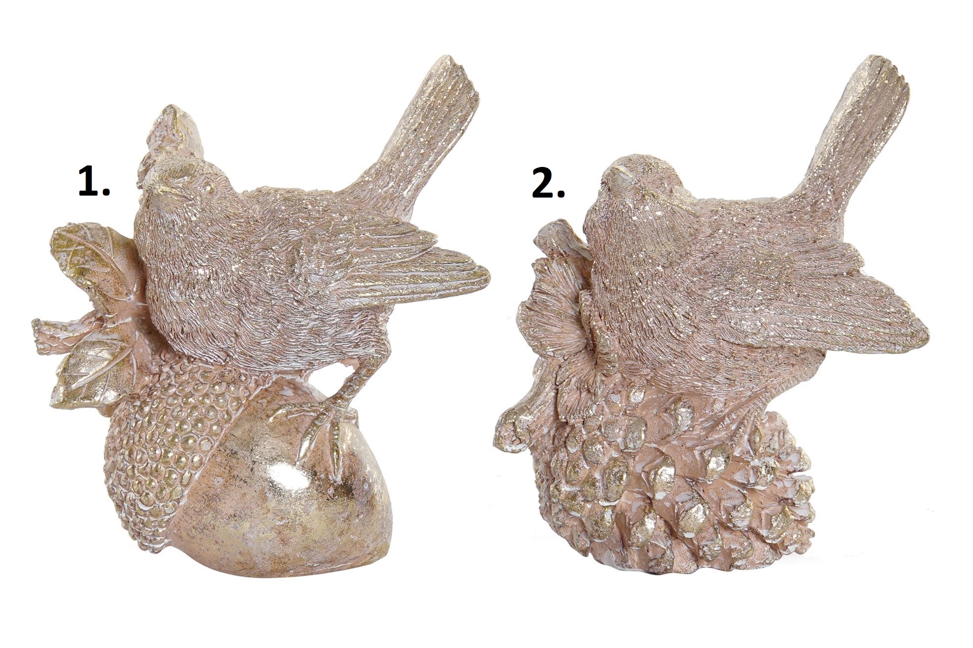 Polyresinový vták zlatý lesklý v dvoch variantoch. Vtáčik má veľmi vydarené detaily. Vďaka zlatej farbe vyzerá dekorácia honosne. Výška dekorácie je 11 cm