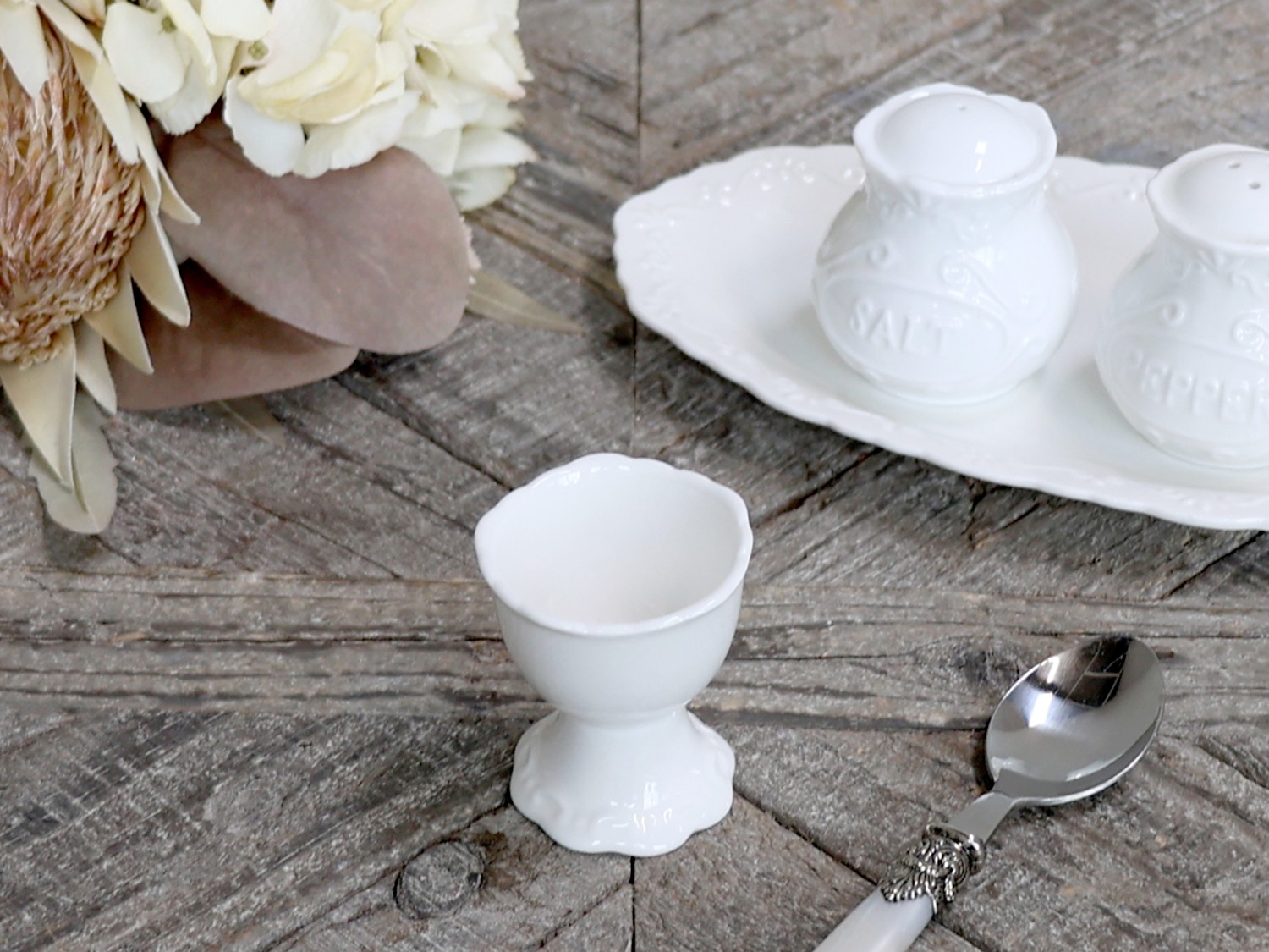 Porcelánový držiak na vajíčko Provence v bielom farebnom prevedení z dielne dánskej značky Chic Antique . Držiak na vajíčko je jedinečným a originálnym doplnkom do každej domácnosti. Taktiež je aj užitočným pomocníkom, nie len počas veľkonočných sviatkov, ale aj celoročne. Rozmer držiaka je 5 x 6 cm. Materiál: Porcelán.