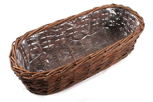 Prútený hnedý košík - truhlík vystlaný fóliou na sadenie rastlín 45x17x12 cm 27760