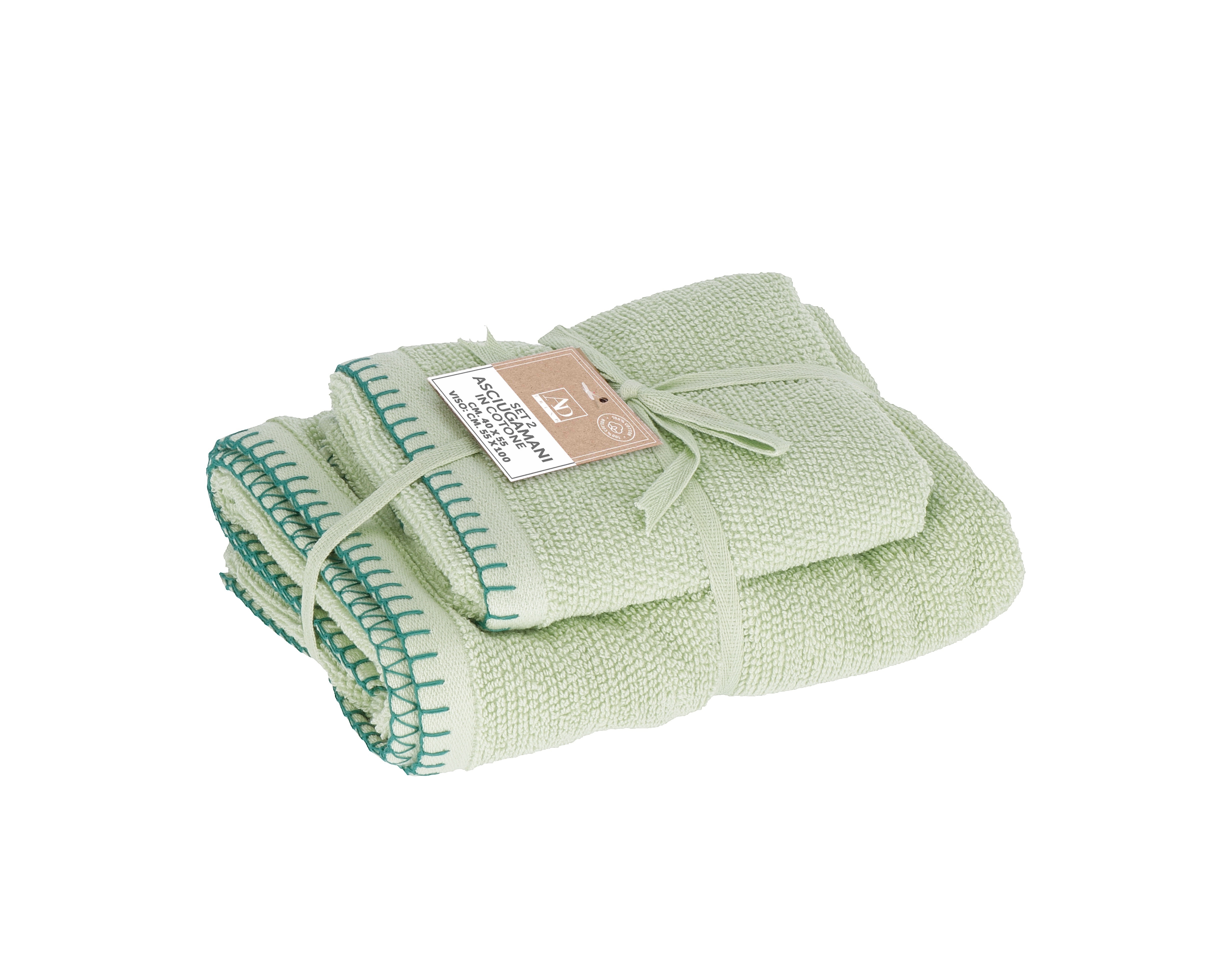 Set dvoch kusov bavlnených uterákov v svetlozelenom farebnom prevedení 40 x 55 / 55 x 100 cm 39767
