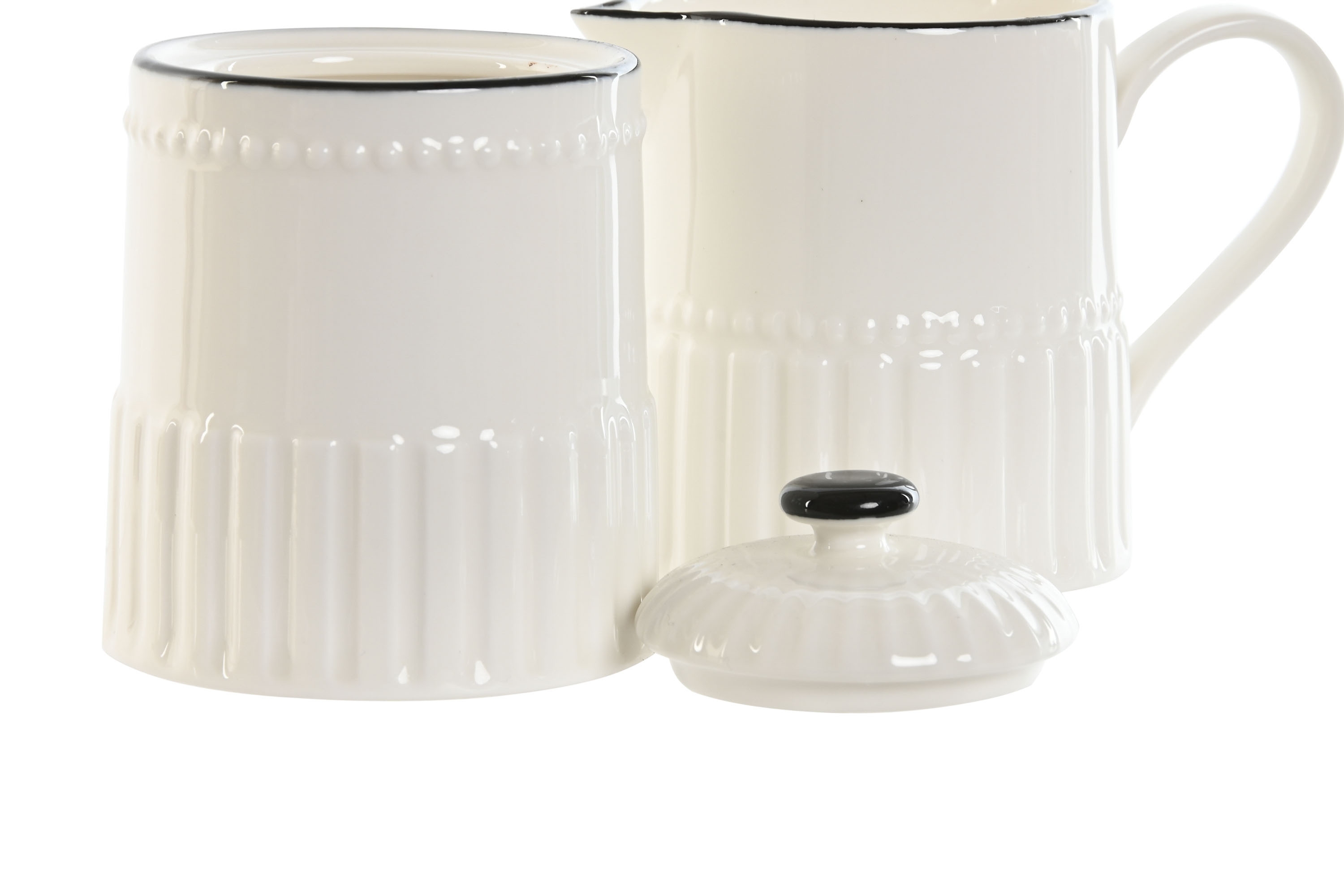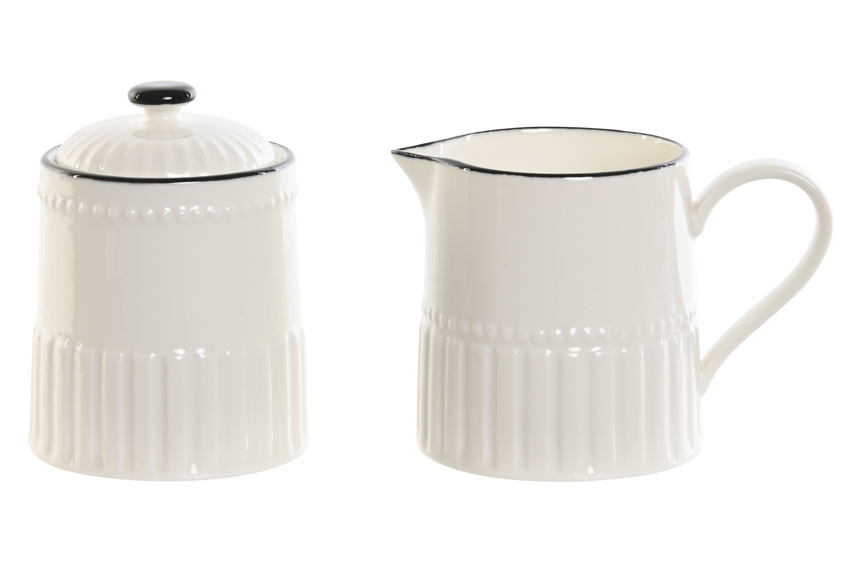 Set dvoch kusov porcelánových dóz - cukornička a krčah na mlieko v bielom farebnom prevedení s dekorovaním 250 ml 44063