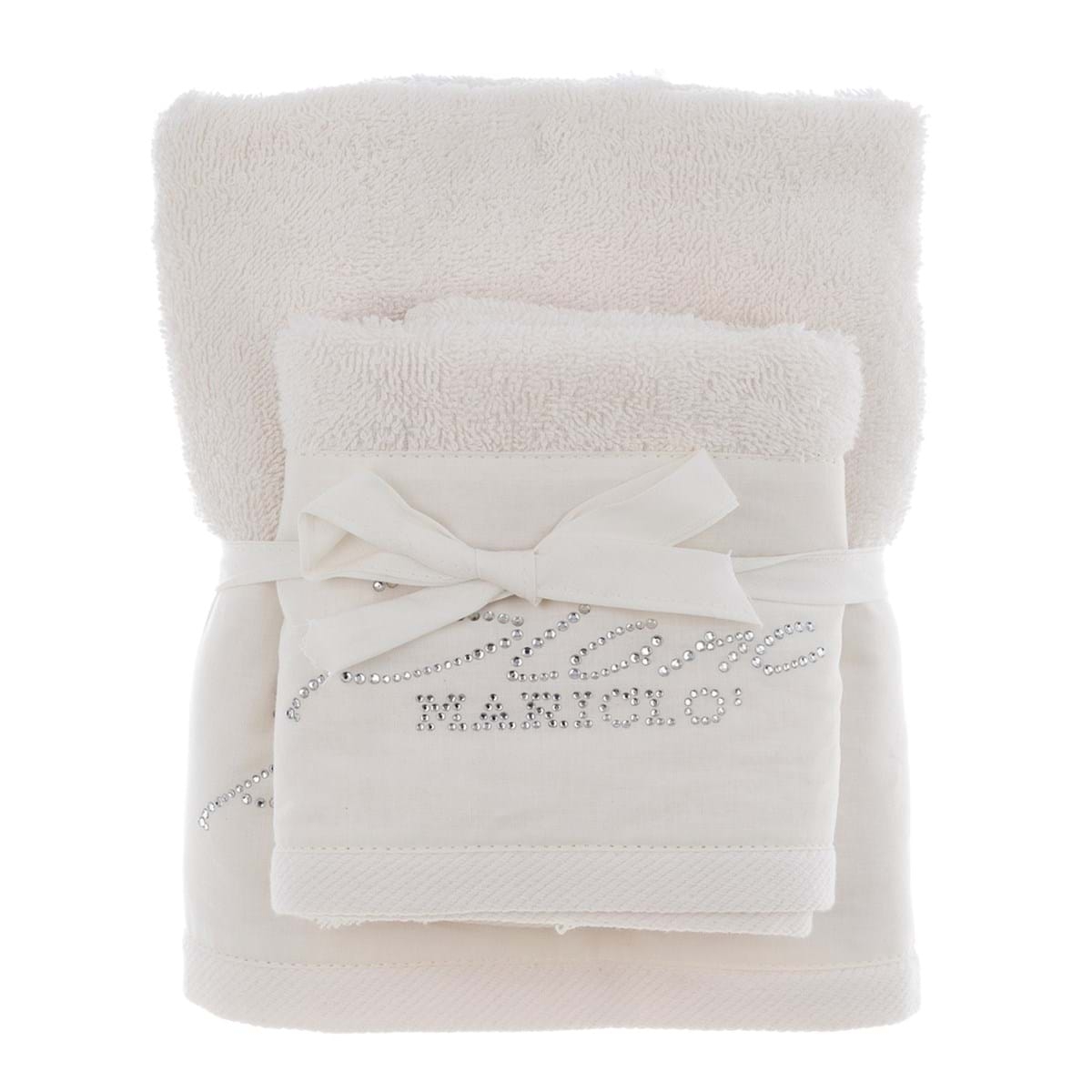 Set dvoch kusov uterákov v bielom farebnom prevedení so striebornými kamienkami 40x60/60x100 cm Blanc Maricló 42561
