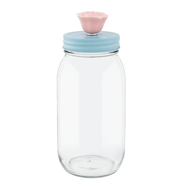 Sklenená fľaša s modrým dekorovaným vrchnákom z dielne holandskej značky Clayre & Eef. Fľaša je s spolu s tyrkysovým vrchnákom a s dekoratívnym úchytom pripomínajúci drahokam.