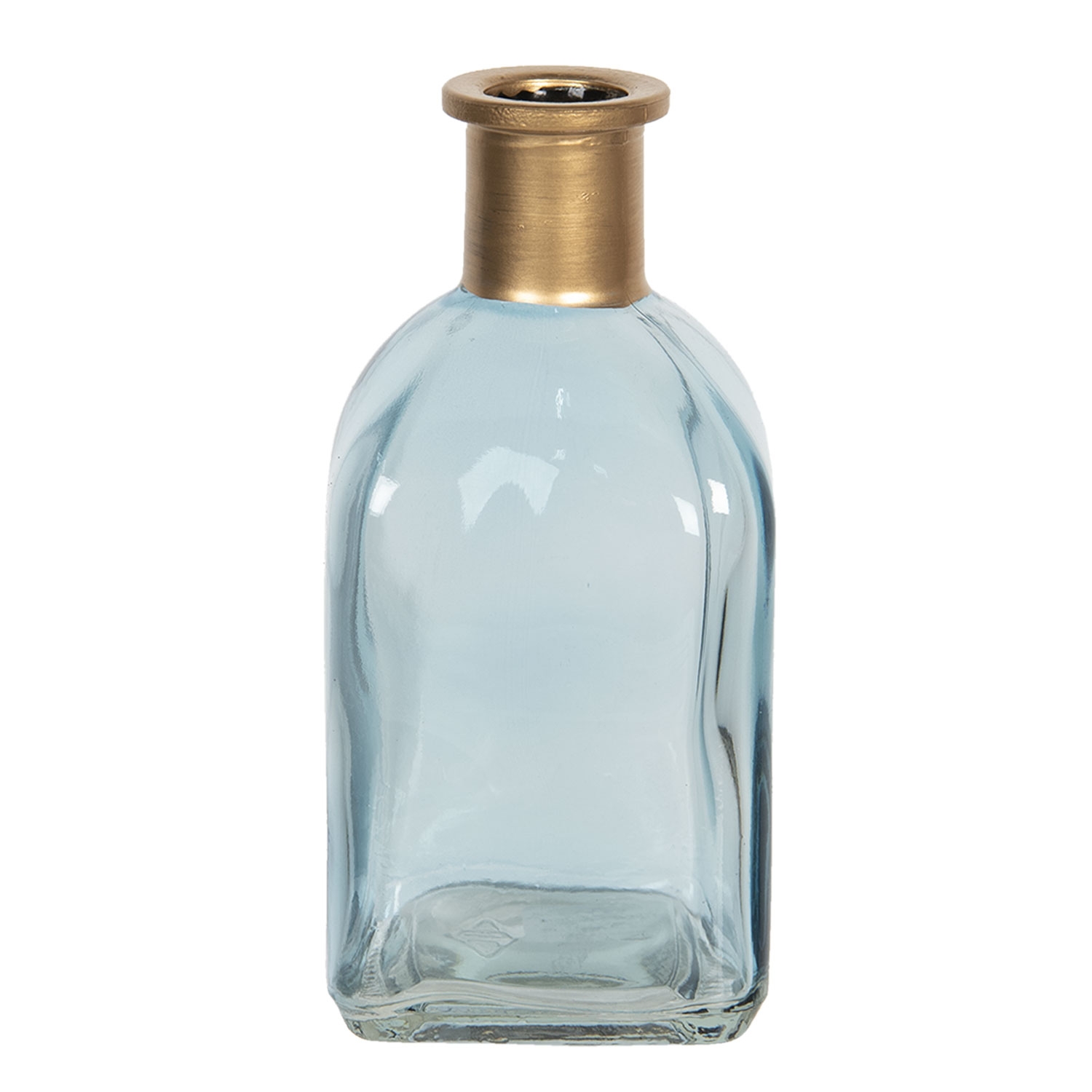 Sklenená hranatá modrá váza s hrdlom v zlatej farbe 6x6x13 cm Clayre-Eef 33313