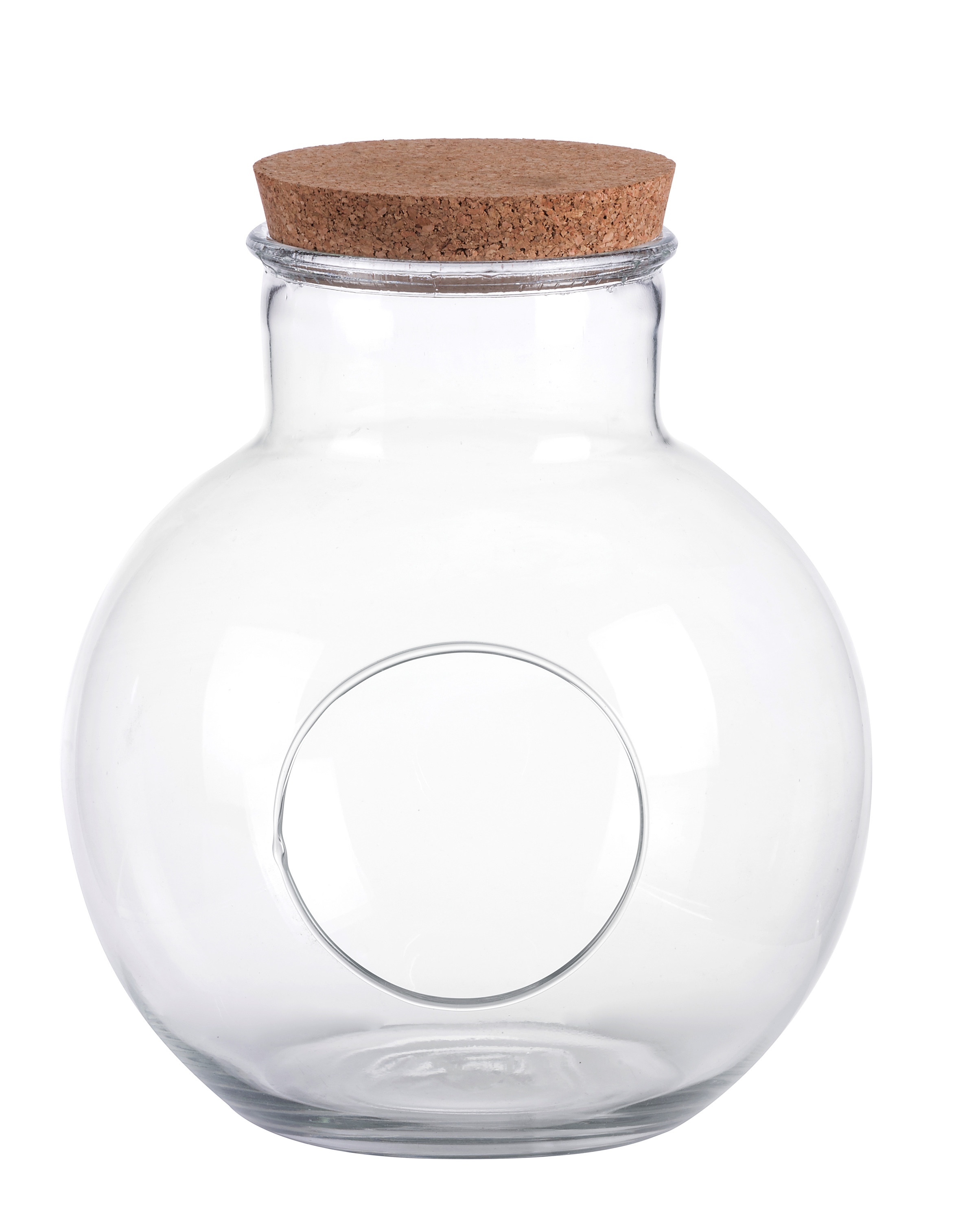 Sklenená váza s hladkým povrchom v transparentom prevedení s otvorom a korkovou zátkou 25 x 27 cm 39751
