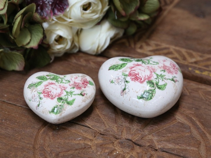 Srdce keramické s ružičkami v rustikálnom vintage štýle Chic Antique 34815 - obrázok 1