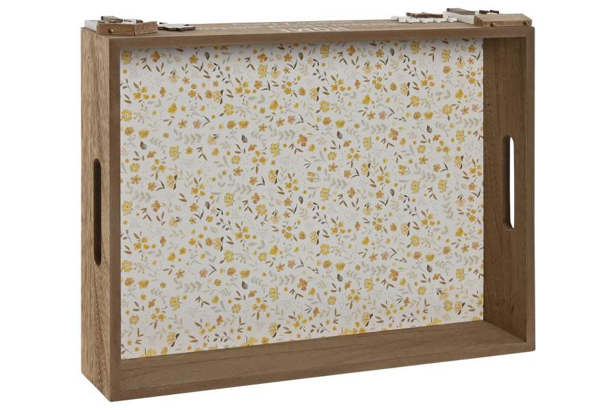 Dekoratívna drevená tácka s motívom malých domčekov a kvetiniek je ideálna na servírovanie nápojov či drobných pochutín, alebo ako štýlový doplnok do vášho domova. Jemné detaily a farebný motív dodávajú tácke útulný a hravý vzhľad.