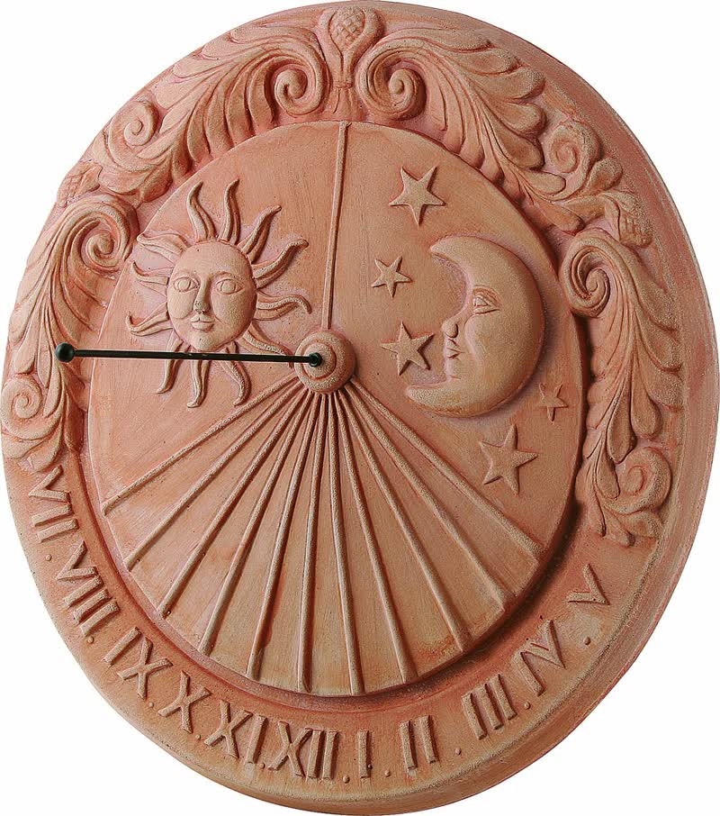 Terakotová dekorácia na stenu ako slnečné hodiny so slnkom a mesiacom 43 cm 34954
