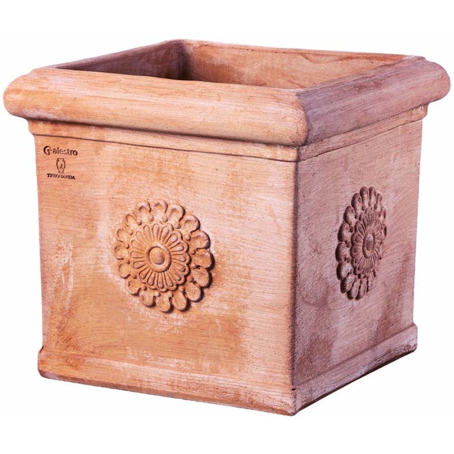 Terakotový kvetináč v tvare kocky s dekorovaním Cubo Con Rosone 45 cm 41016