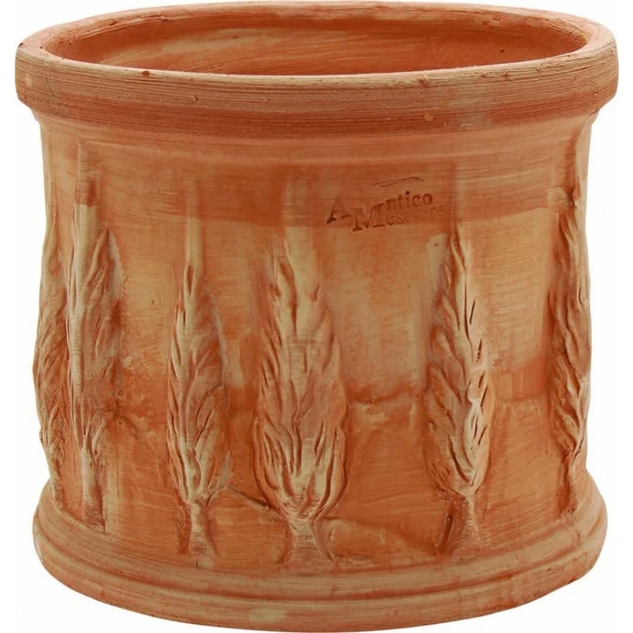 Terakotový okrúhly kvetináč s motívom talianskych cyprusov 25 cm 19573
