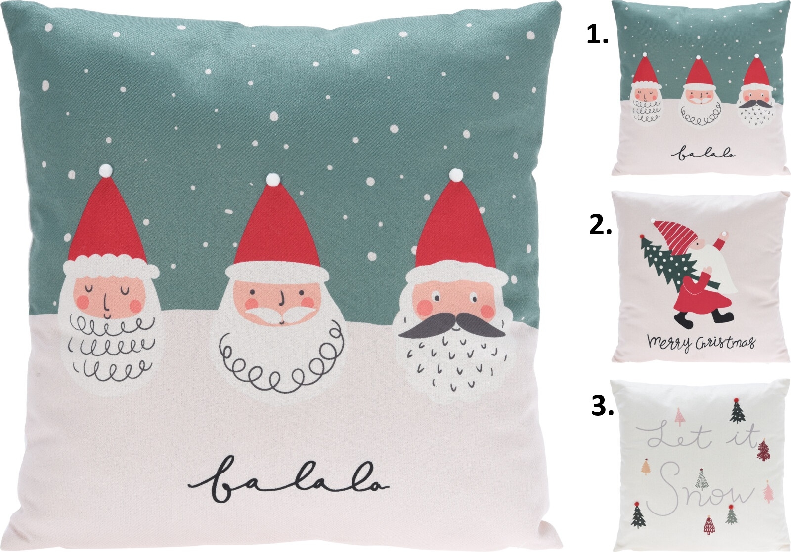 Textilná dekorácia vankúša s vianočným dekorovaním a nápisom v troch prevedeniach 45 x 45 cm 44627 - obrázok 1