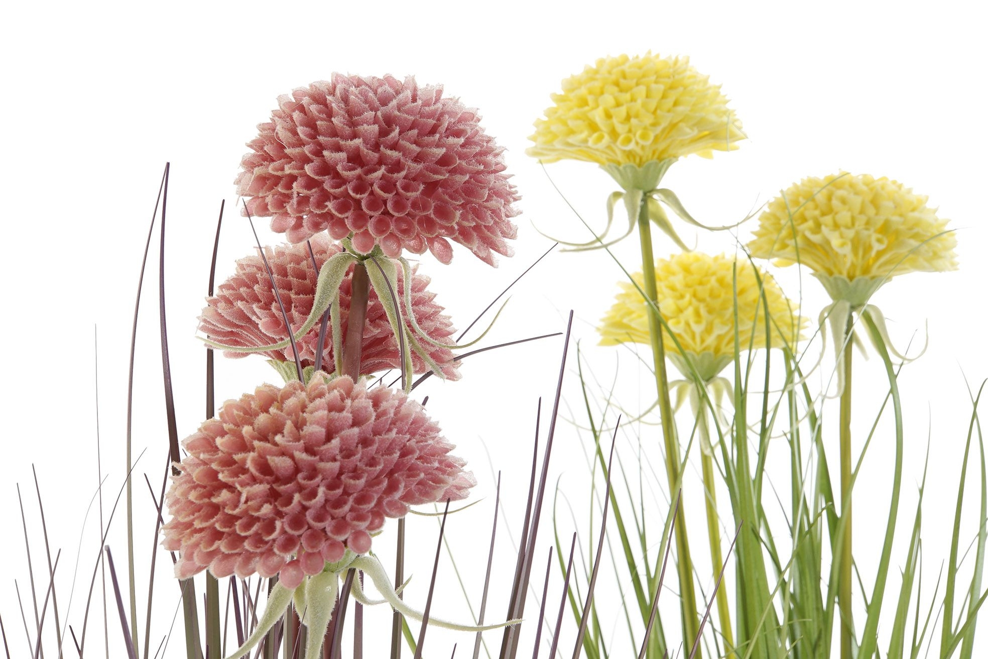 Tráva s ružovými alebo žltými kvetmi v kovovom kvetináči 60 cm 32808