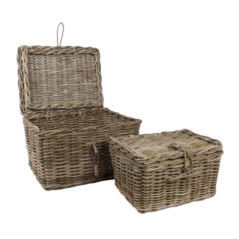 Ratanový košík - truhlica v prírodnom farebnom prevedení. Košík je z prírodného materiálu, vďaka čomu pôsobí vo vidieckym štýlom. Košík je možné využiť či už v interiéri alebo exteriéri. Truhlica má krásny štýlový dizajn. Truhlica je krásny doplnok ale najmä slúži ako štýlový odkladací priestor pre deku, podsedáky alebo napríklad aj na vankúše z Vašej terasy. Rozmer truhlice je 50 x 40 x 30 cm.