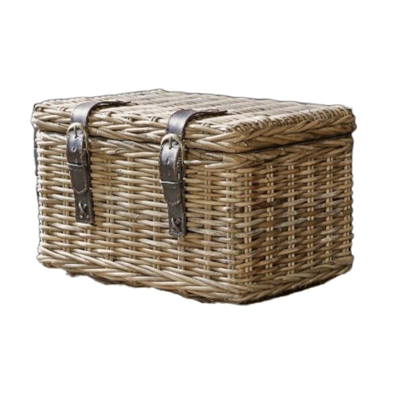 Ručne pletená ratanová truhlica s koženými pásikmi – praktický úložný priestor s prírodnou eleganciou