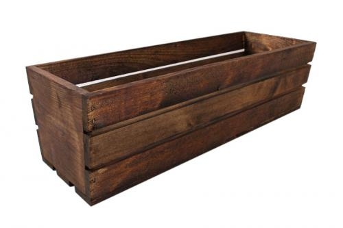 Tento drevený hnedý truhlík slúži ako obal na plastový truhlík vysadený kvietkami či bylinkami. Vďaka svojej veľkosti doň môžete posadiť aj väčšiu kompozíciu Vašich obľúbených rastlín a byliniek a postaviť tento drevený truhlík na výzdobu okenných parapiet, terás a podobne. Dĺžka truhlíka je 50 cm.