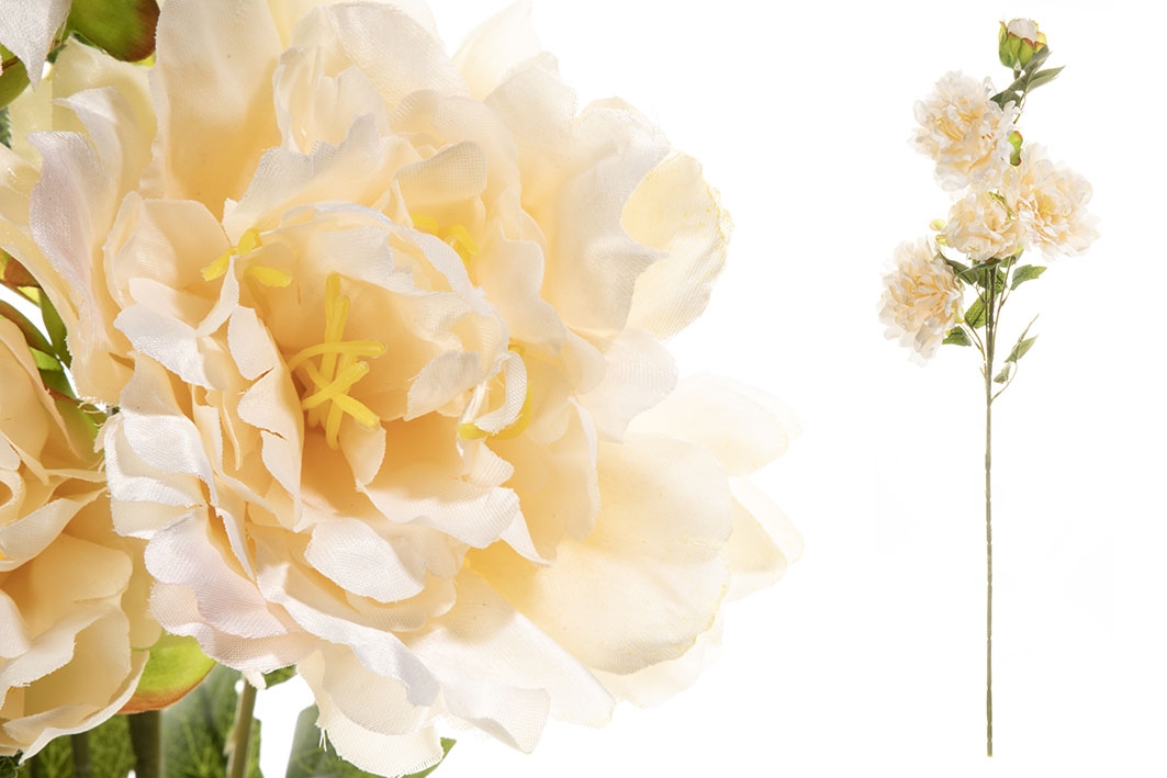 Umelá dekorácia kytice krémových pivoniek na zelenej stonke s lístkami 88 cm 43811