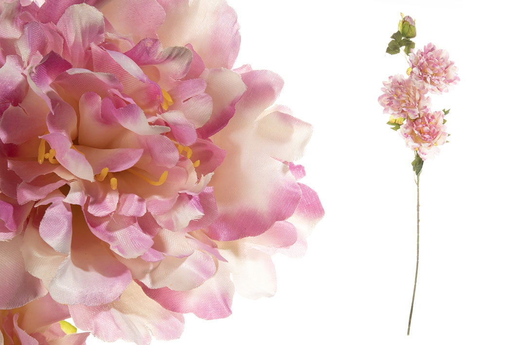 Umelá dekorácia kytice ružových pivoniek na zelenej stonke s lístkami 88 cm 43812