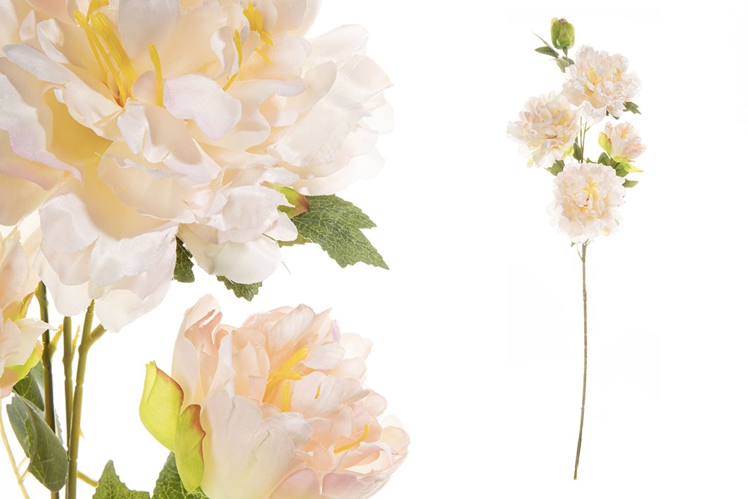 Umelá dekorácia kytice svetloružových pivoniek na zelenej stonke s lístkami je krásnou dekoráciou či už do interiéru alebo do exteriéru. Vďaka nezvyčajnému vzhľadu prinesie do Vášho domova krásnu atmosféru. Oživte si svoj domov touto neuveriteľne krásnou kyticou. Celková dĺžka kytice je 88 cm.