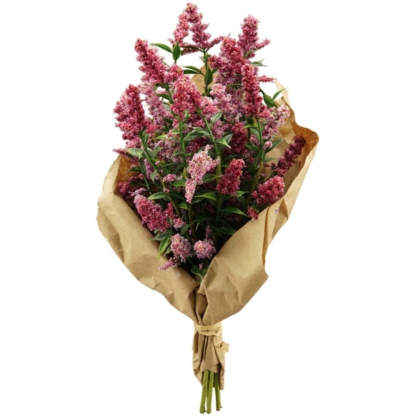 Umelá dekoratívna kytička ružových kvietkov s lístkami v hnedom papieri je krásnou dekoráciou či už do interiéru alebo do exteriéru. Vďaka nezvyčajnému vzhľadu prinesie do Vášho domova krásnu atmosféru. Oživte si svoj domov touto neuveriteľne krásnou kytičkou. Vhodná aj ako malé potešenie pre Vašich najbližších. Celková dĺžka kytičky je 15 cm.