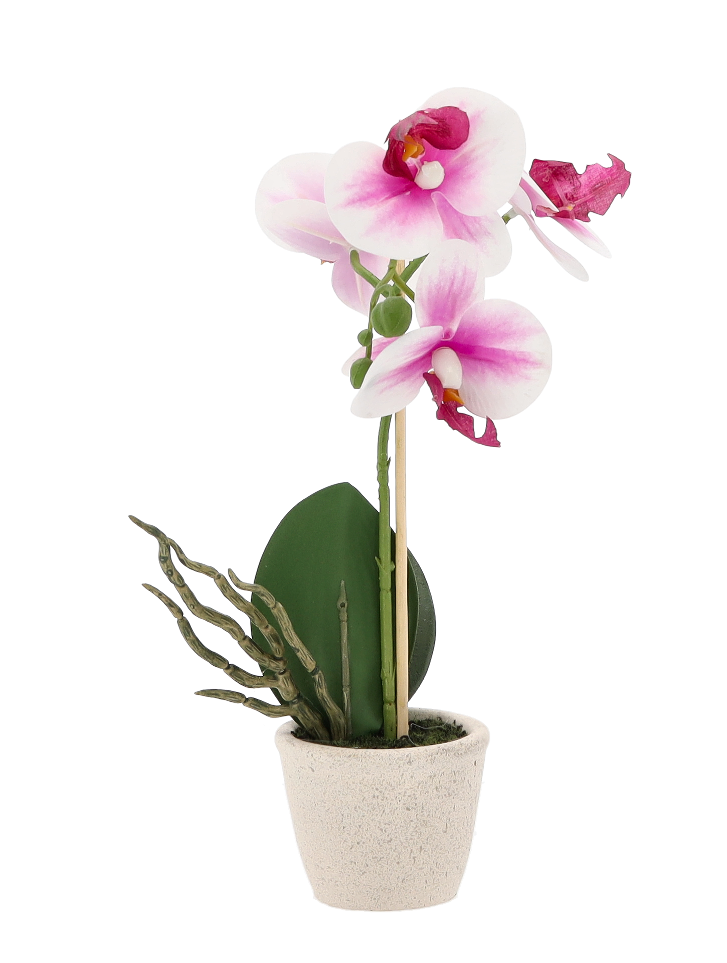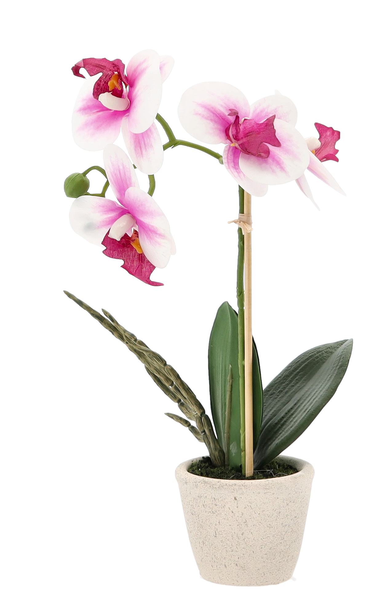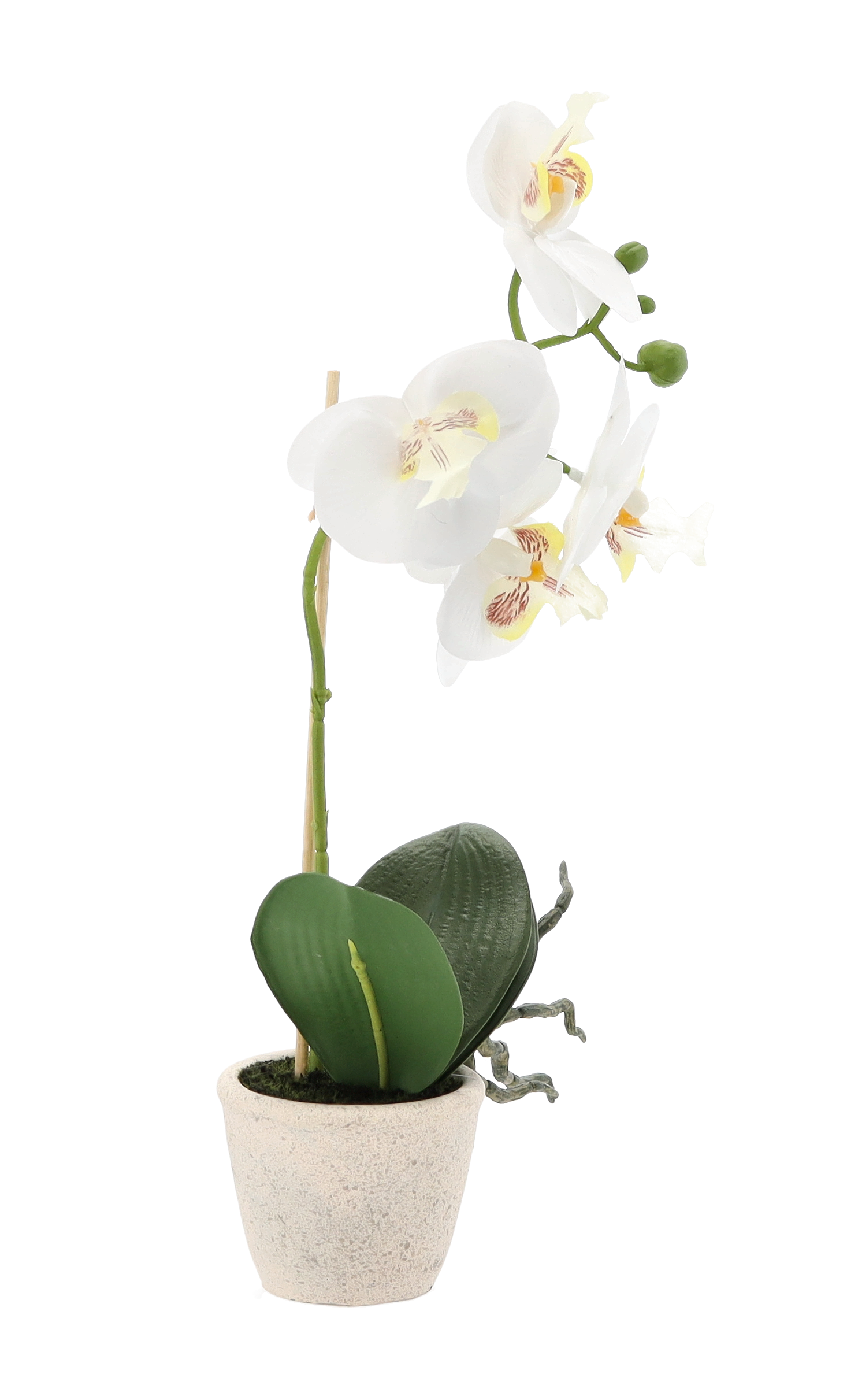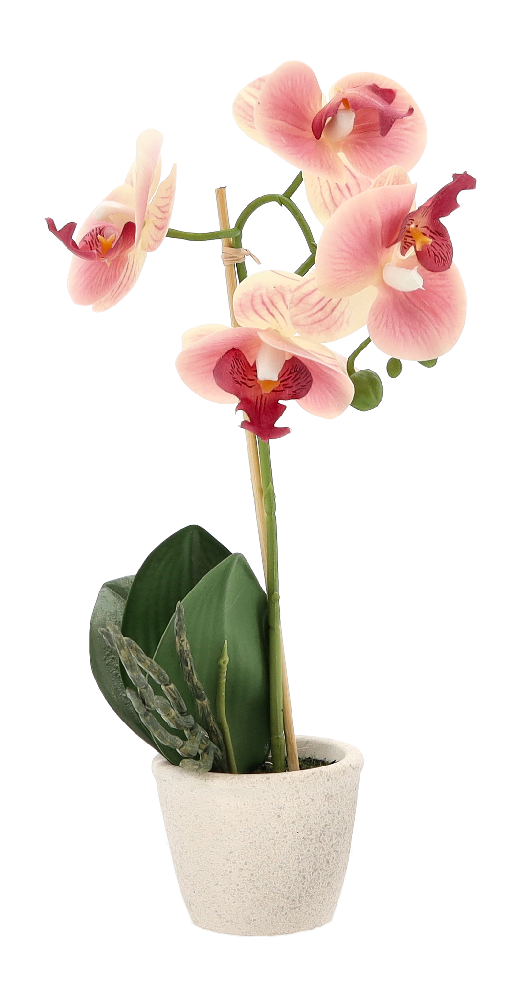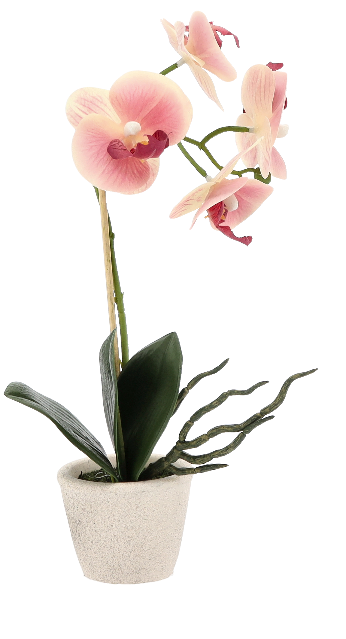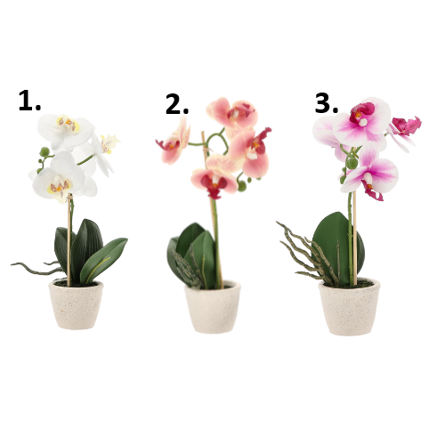 Umelá ozdobná dekorácia orchidey v troch farebných prevedeniach v keramickom krémovom kvetináči je krásnou dekoráciou či už do interiéru alebo do exteriéru. Vďaka nezvyčajnému vzhľadu prinesie do Vášho domova krásnu atmosféru. Oživte si svoj domov touto neuveriteľne krásnou orchideou, na pohľad úplne ako živou. Bez polievania a bez námahy sú nádherné po celý rok a pritom vyzerajú ako živé, na dobrom mieste pestované, orchideí. Krásna a po cely rok kvitnúca orchidea vyzdobí celý Váš domov, či okno. Rozmer orchidey je 30 cm.