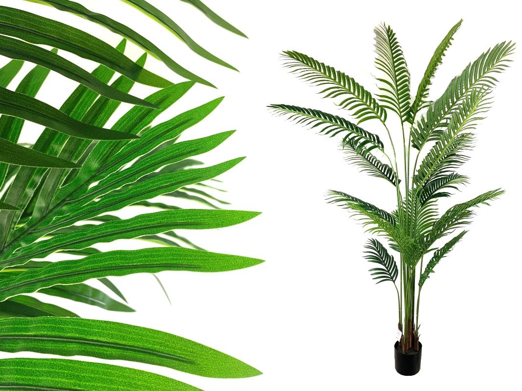 Krásna, umelá palma v kvetináči je podobná prírodným palmám a kríkom. Je perfektná tam, kde chceme do miestností pridať život a prírodu. Krásne vyzerá na balkóne, terase a záhrade. Vyrobená z plastu najvyššej kvality, zaujme svojou eleganciou a presnosťou. Výška palmy aj s kvetináčom je 210 cm.