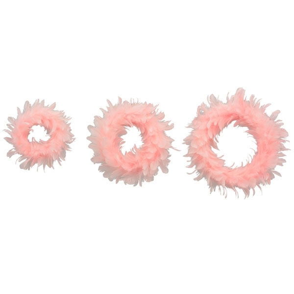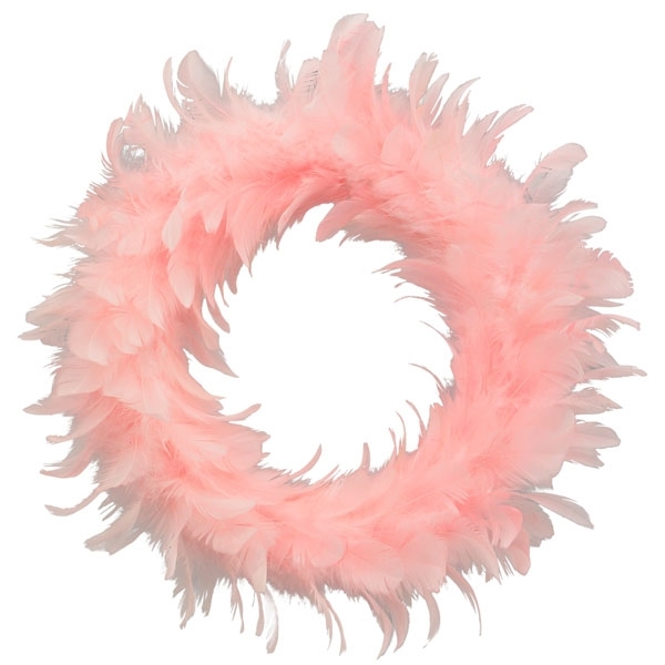 Umelý dekoratívny veniec s pierkami v ružovom farebnom prevedení a priemerom 25 cm 42152