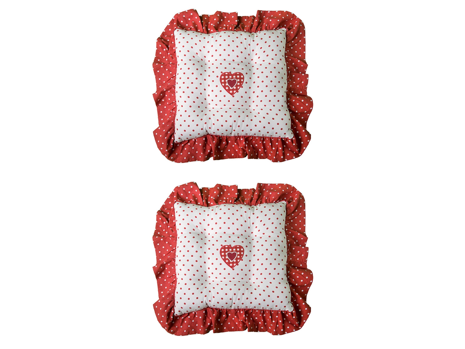 Vankúš - podsedák v bielo-červenom farebnom prevedení s dekorom srdiečok a bodiek 40 x 40 cm 42622