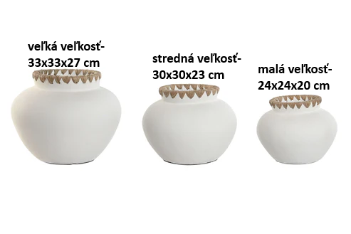 Váza keramika biela, zdobená motúzom