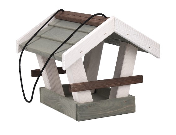 Veľká priestranná drevená vtáčia búdka sivá ako krmítko pre vtáčiky na zavesenie ako krásna dekorácia do Vašej záhrady pre krásne a luxusné ubytovanie vtáčikom. Spriateľte sa s prírodou aj Vy a ponúknite elegantný domov pre operených cestovateľov. Búdka Vám bude skrášľovať Vašu záhradku a operený priateľ Vám bude vďačne vyspevovať noty.