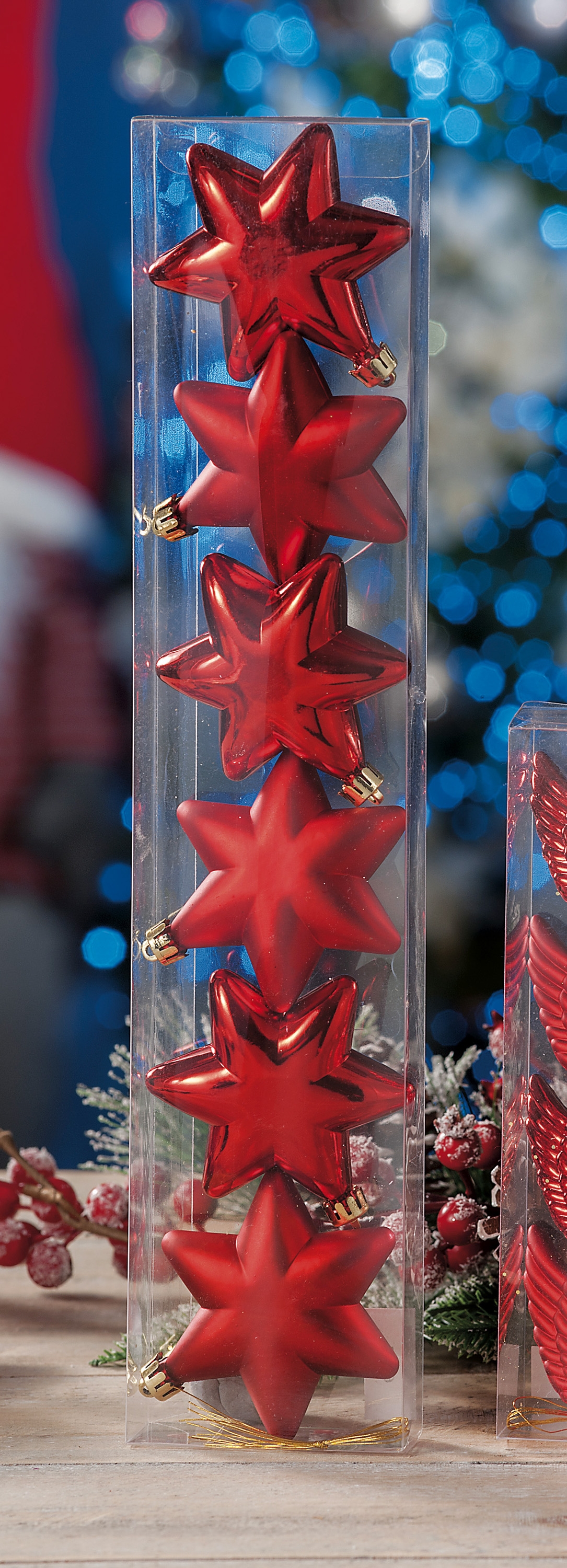Vianočné ozdoby hviezdy 6 ks v balení červené, 7x3x8 cm 33187