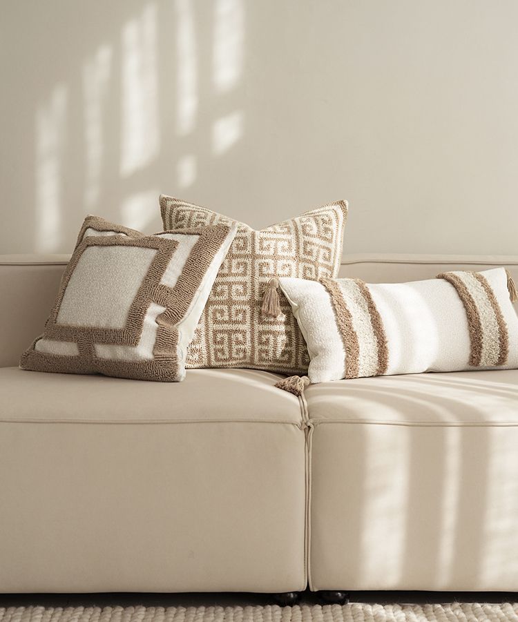 Elegantný béžový vankúš z exkluzívnej kolekcie Z&M Exclusive je nadčasovým doplnkom, ktorý dodá interiéru jemnosť, útulnosť a harmonický vzhľad.