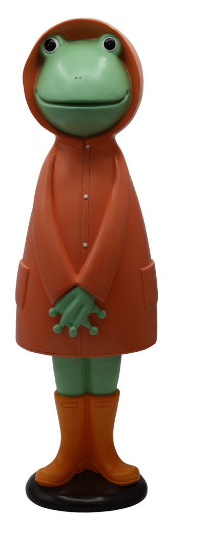 Polyresinová dekorácia postavičky žabky v plášti v gumákoch na podstavci. Žabka je skvelou a jedinečnou ozdobou do Vašej záhrady. Oživte svoju záhradku týmto neodolateľným kúskom. Krásne ozvláštni každý aranžmán. Žabka vyzerá naozaj realisticky. Rozmer žabky je 14 x 13,5 x 47 cm.