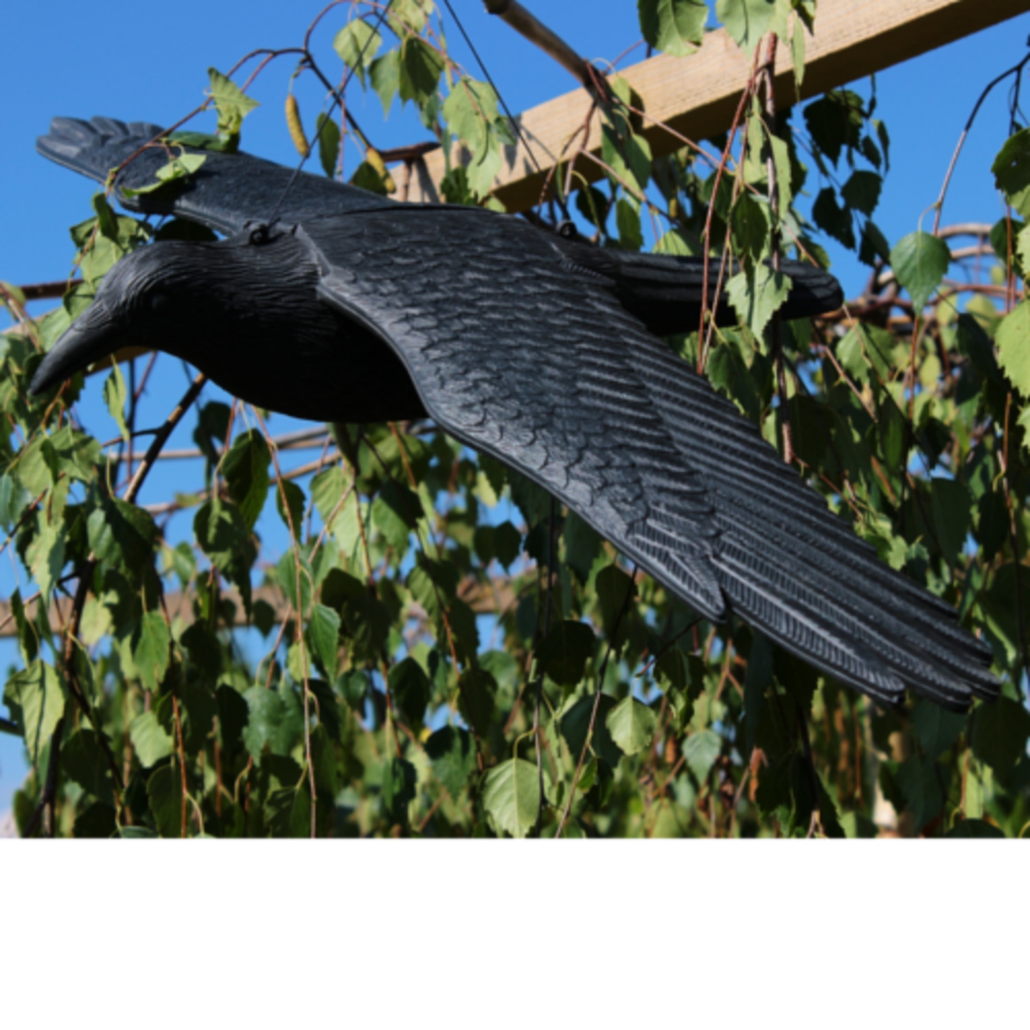 Záhradná dekorácia - plastová vrana s rozprestretými krídlami. Slúži aj ako odstrašovač iného vtáctva. Veľkosť vrany je 80x44x12 cm. Možnosť zavesenia.
