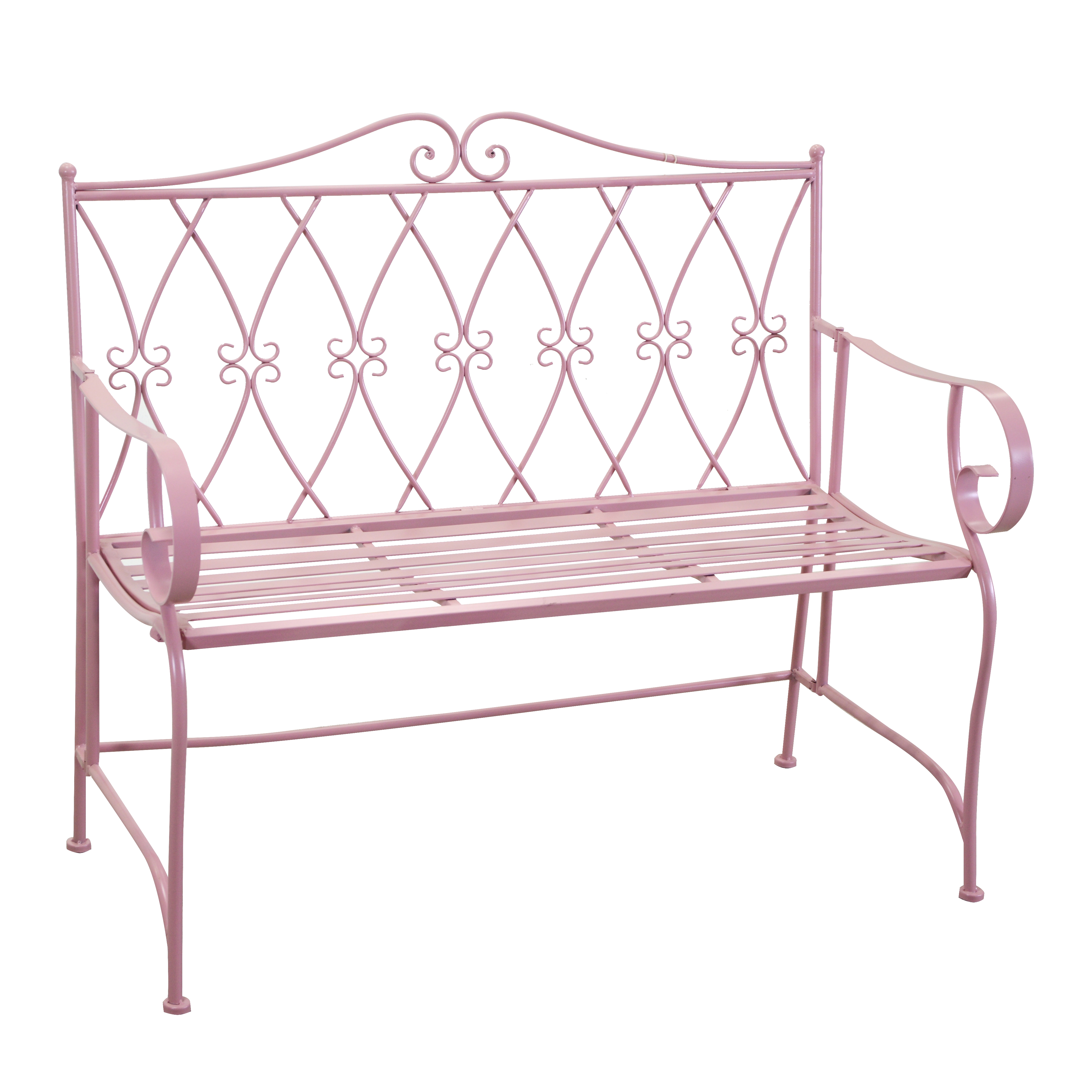 Záhradná kovová lavica v ružovom farebnom prevedení s dekorovaním 106 x 55,5 x 94 cm 40132