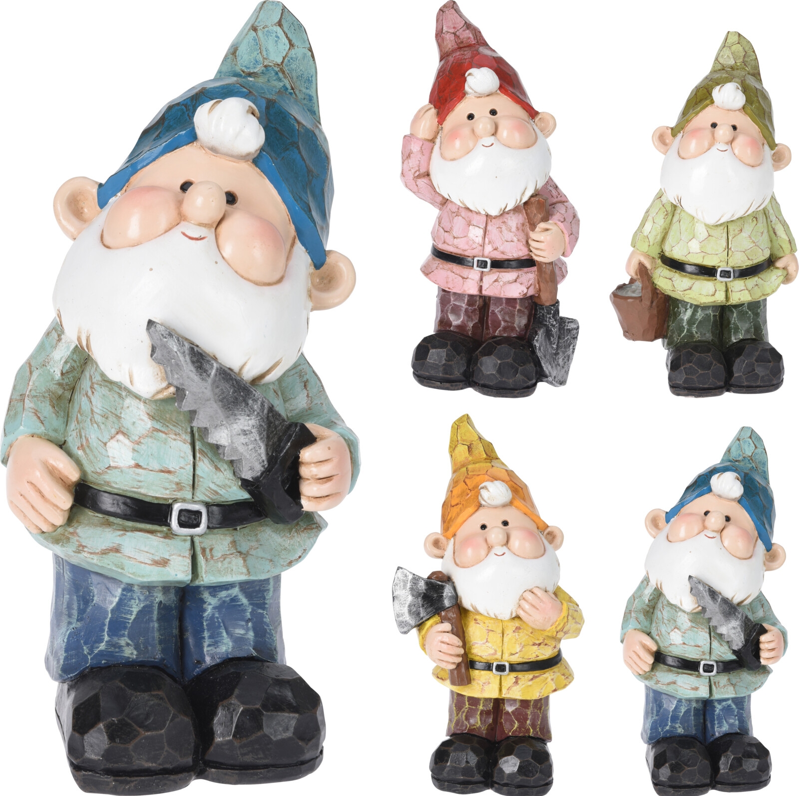 Záhradná polyresinová postavička trpaslíka držiaceho v ruke predmet je originálnou dekoráciou záhrady, terasy alebo balkóna. Oživte svoju záhradku týmto neodolateľným kúskom. Postavička trpaslíka je dostupná v štyroch prevedeniach - žltá, modrá, zelená a červená.