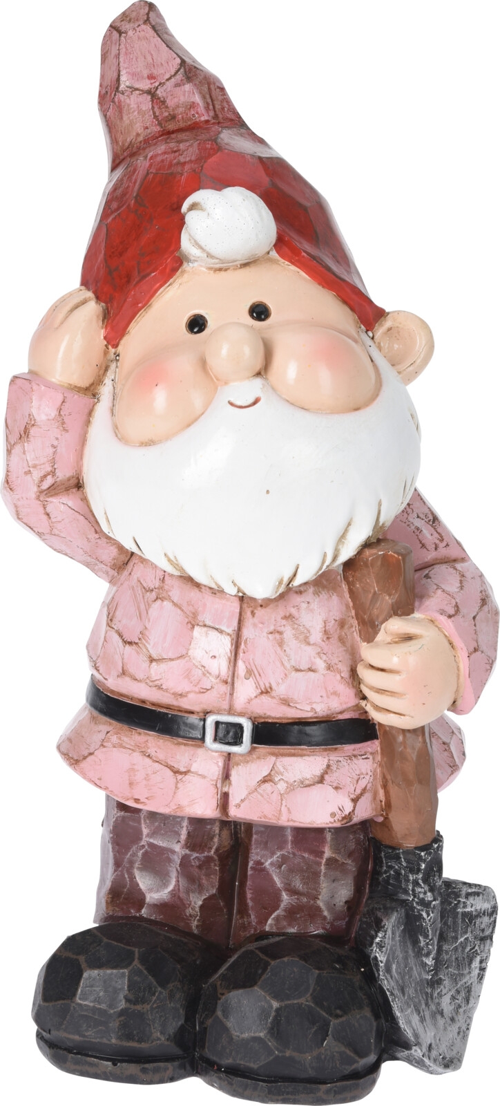Záhradná polyresinová postavička trpaslíka držiaceho v ruke predmet v štyroch prevedeniach 11 x 9 x 21 cm 37169