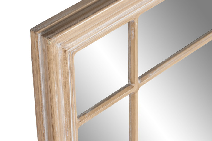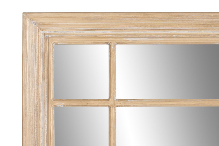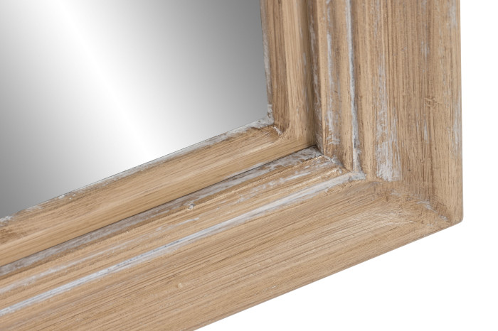 Elegantné zrkadlo s rámom z dreva v prírodnej farbe s bielou patinou dodá vášmu interiéru jemný vintage nádych. Perfektné na stenu v predsieni, spálni alebo obývacej izbe, kde zvýrazní svetlo a opticky zväčší priestor.